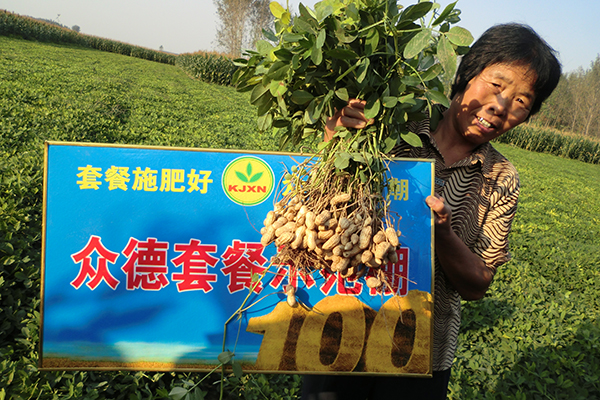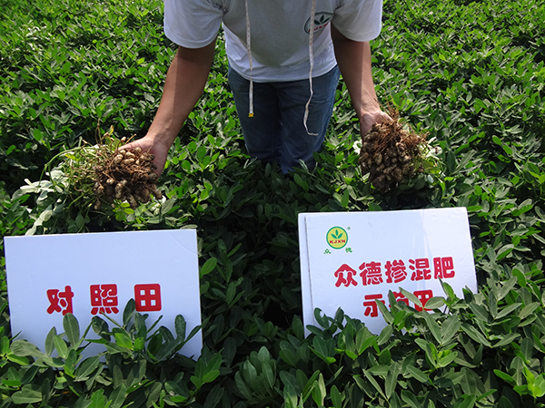 沂南縣辛集北左泉村農(nóng)民顧守武,去年用眾德(16-12-14)120斤/畝,生物有機(jī)肥80斤/畝,新朋友貴蓋美30斤,持力硼2袋,在翻地前一次性施入,到9月10號(hào)收獲期測(cè)產(chǎn)1173斤,與對(duì)照田產(chǎn)量1055斤相比,畝增產(chǎn)118斤,增產(chǎn)幅度11.2%。顧先生滿臉喜悅的說(shuō):“用眾德花生高產(chǎn)套餐方案效果非常好,歸功于眾德系列肥料原料考究,配方合理,營(yíng)養(yǎng)全面,對(duì)于重茬、土壤酸化等問(wèn)題障礙能夠得到有效解決,改良并活化土壤,特別是態(tài)康科、康樸系列葉面肥,能促進(jìn)花生根系和葉片生長(zhǎng),補(bǔ)充硼、鉬、鈣等中微肥,提高座果率、改善品質(zhì),提高產(chǎn)量,農(nóng)民最終獲得收益。